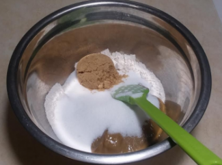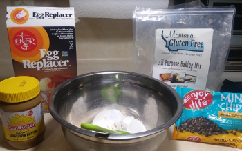 In a medium size bowl, measure out the gluten free flour, baking soda and egg replacer. Stir the dry ingredients.