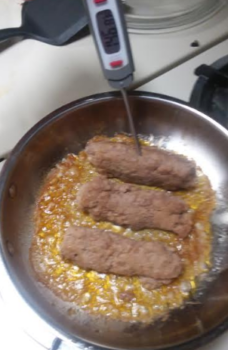 Cook over medium-low heat. Rotate with a spatula or tongs until links are crisp on all sides. Then, lower stove temperature to low and cook until center is no longer raw and meat thermometer registers 165* in the center.
